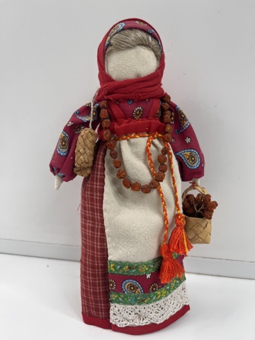 Текстильная кукла с использованием натуральных материалов высотой 22 сантиметра. Аксессуары сплетены из бересты, домоткань.Данные участника