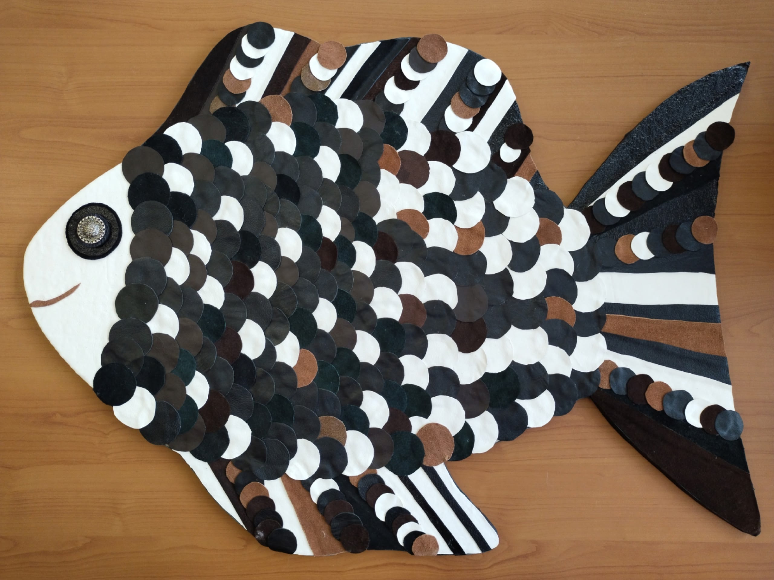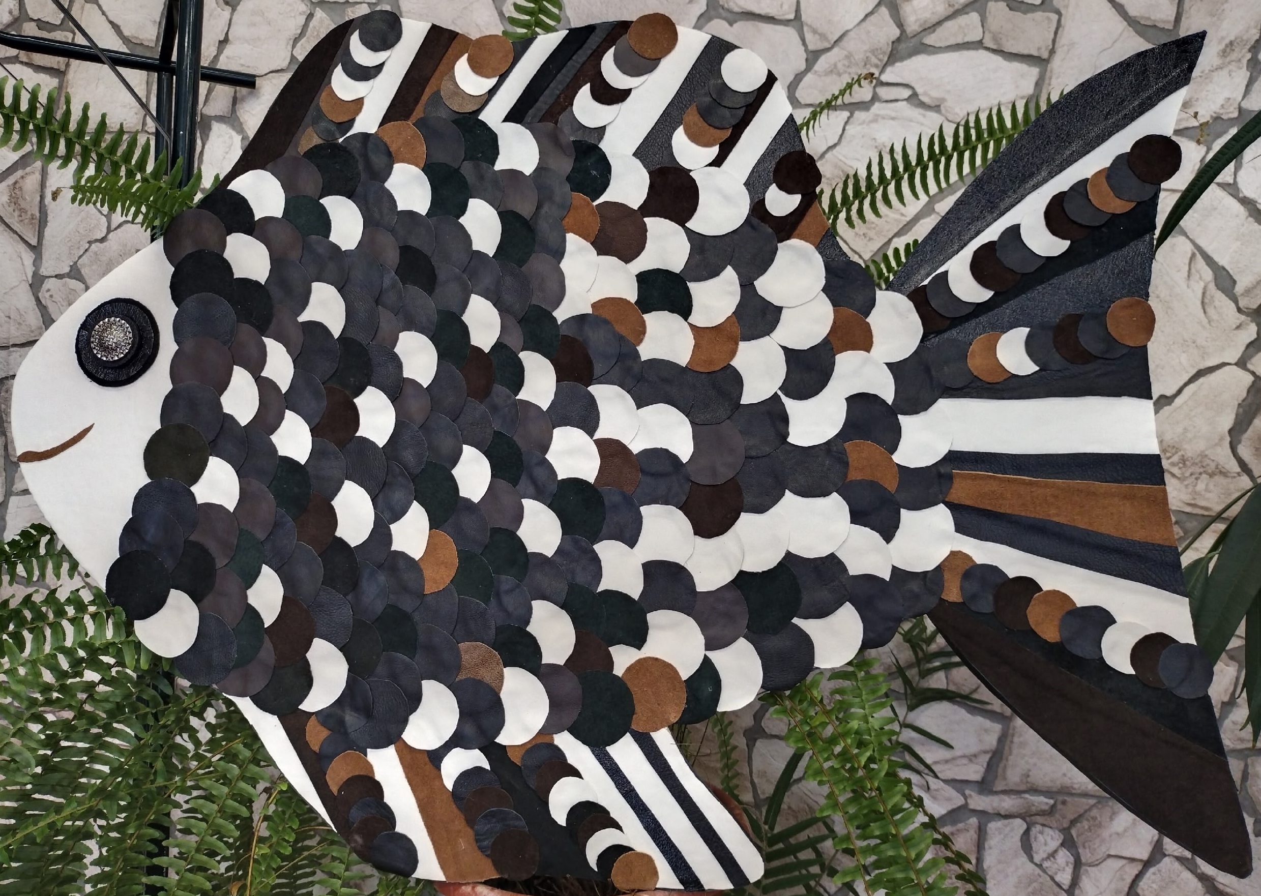Настенное пано выполнено в технике аппликация из кожи. Её размер составляет 60*80 см. С древних времён Пермский край богат рыбным промыслом. Рыбловство играло важную роль людей Пермского края!