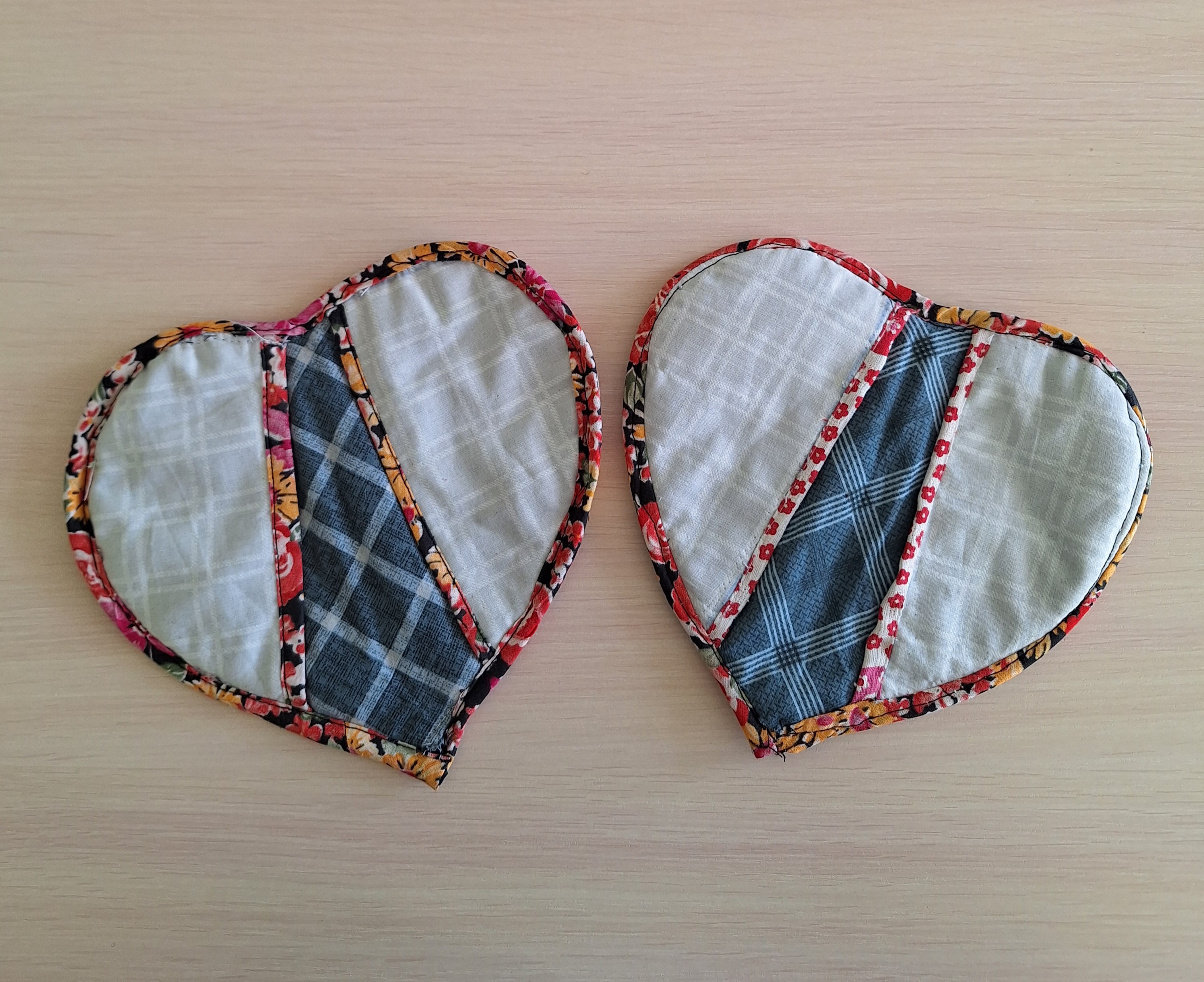 Прихватки выполнены из х/б ткани, размер 0.25 × 0.25 см Дополнительные материалы: синтепон, нитки х/бДанные участника