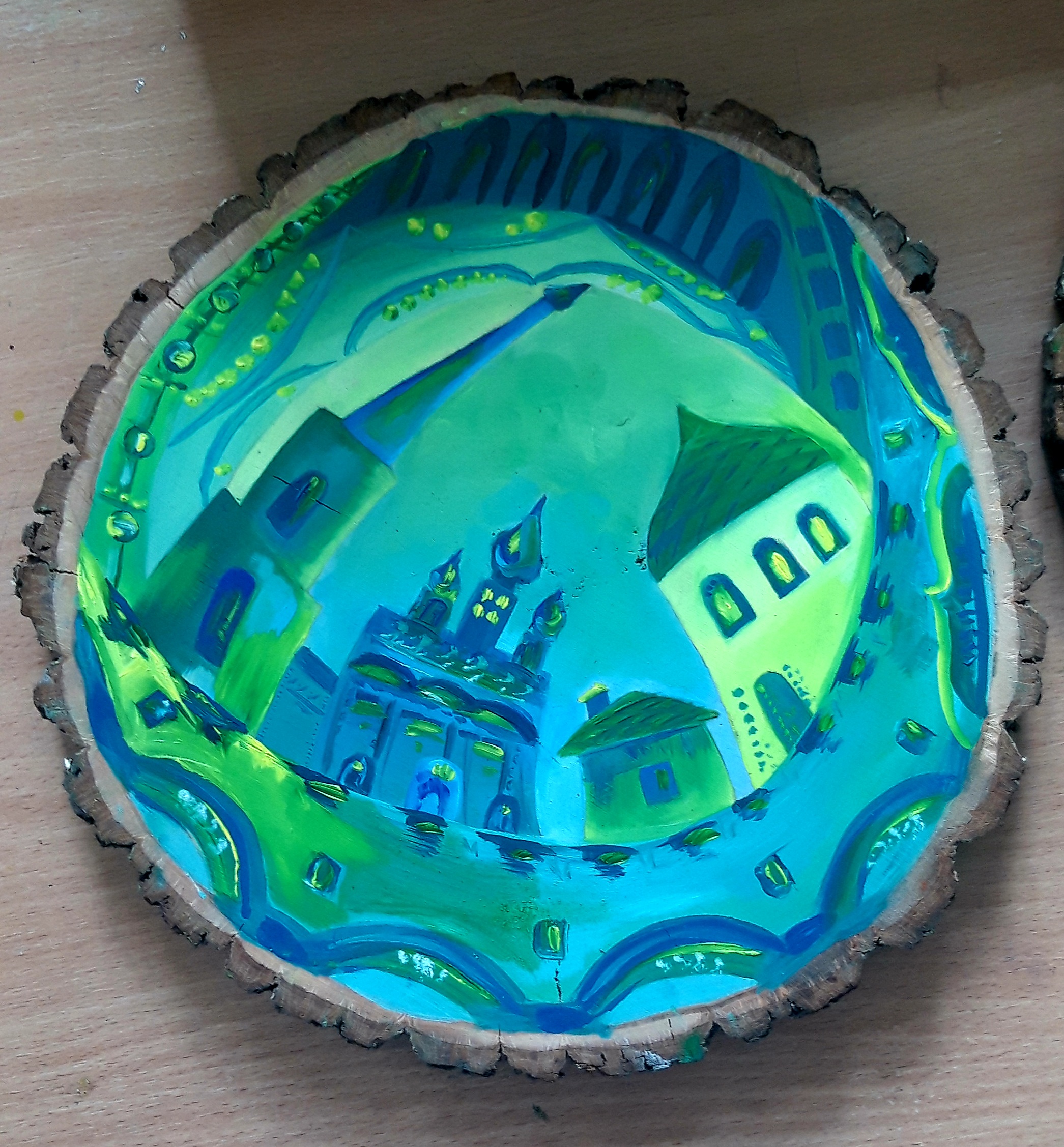 спил дерева диаметр 20-25, роспись по дереву, маслоДанные участника