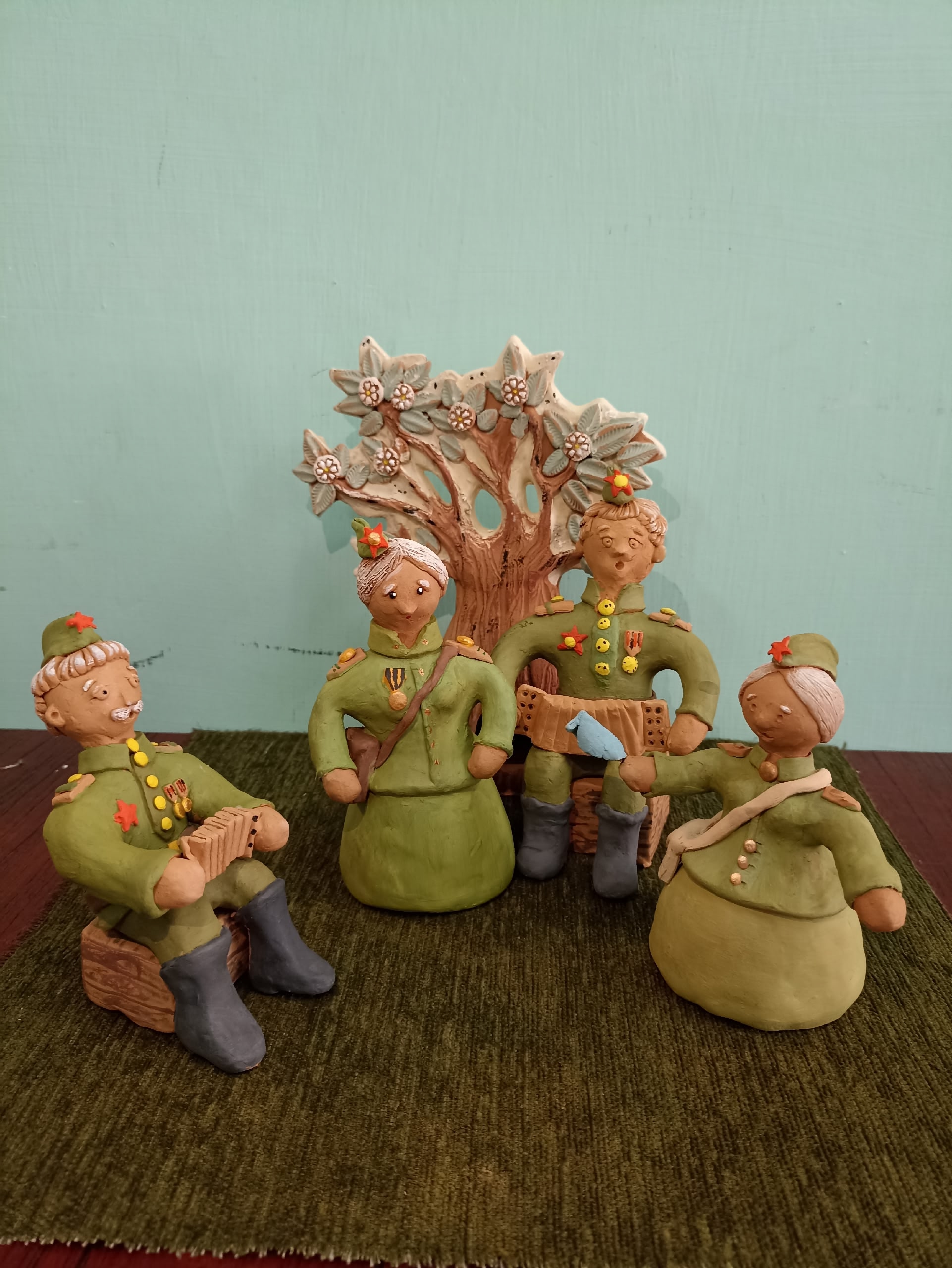 Размер работы 20*30*20 см, ручная лепка из глины. Ощущение радости и гордости людей в счастливый майский день весны - день Победы.Данные участника