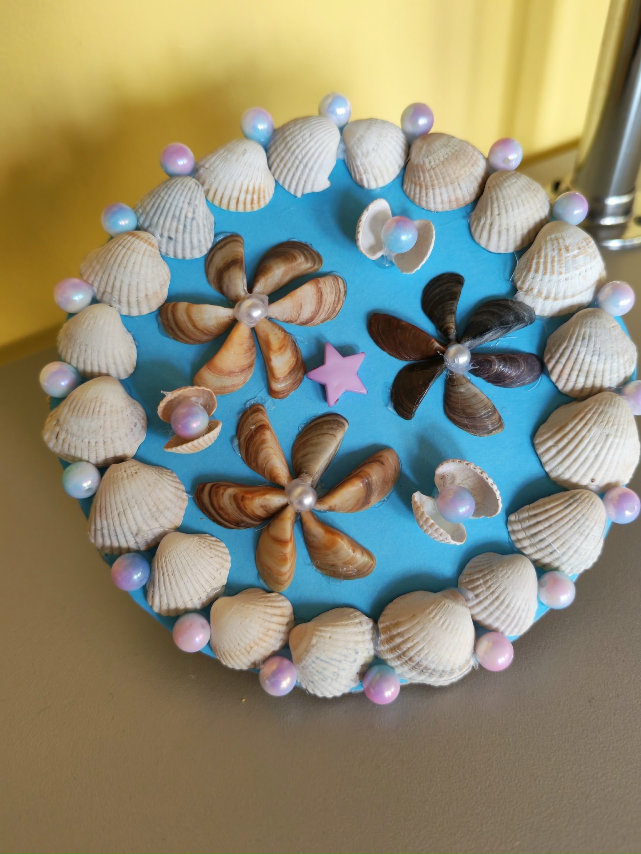 Работа диаметром 13 см. Панно выполнено в смешанной технике из природного материала: ракушки с бусинами.Данные участника