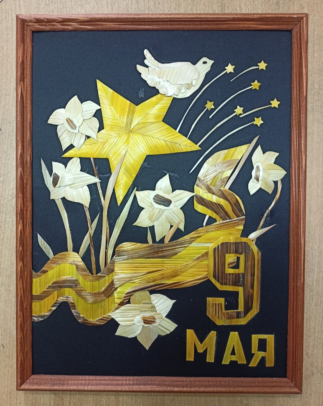 Аппликация из соломы. Размер работы 30x40. Май 1945 года советская армия встретила в Берлине. Наступательная операция, стартовавшая 16 апреля, завершилась 2 мая, а вечером 8 мая (по московскому времени - примерно через час после полуночи 9 мая) состоялось подписание Акта о безоговорочной капитуляции Германии.Данные участника