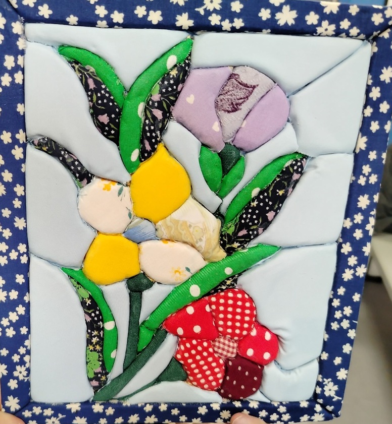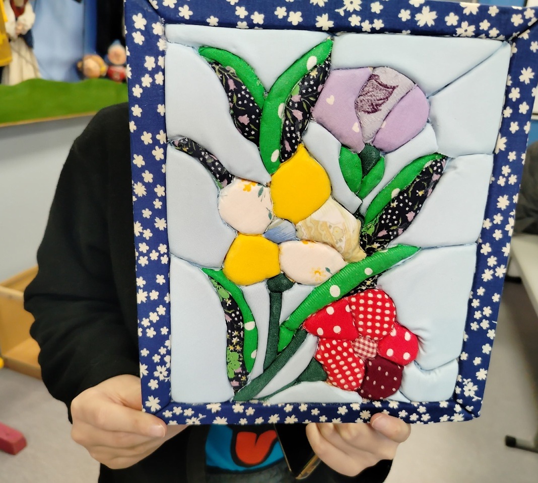 Работа выполнена в технике Кинусайга. Это японская техника рукоделия, которая позволяет создавать картины из лоскутков ткани. Напоминает лоскутное шитьё или пэчворк, но ткань «сшивается» без использования иголки. Ткань - хлопок, 21х25 смДанные участника